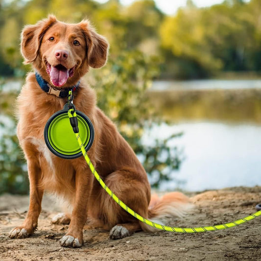 2 Pack Dog Leash 5 FT Heavy Duty - Comfortable Padded Handle - Reflective Dog Leash for Medium Large Dogs with Collapsible Pet Bowl