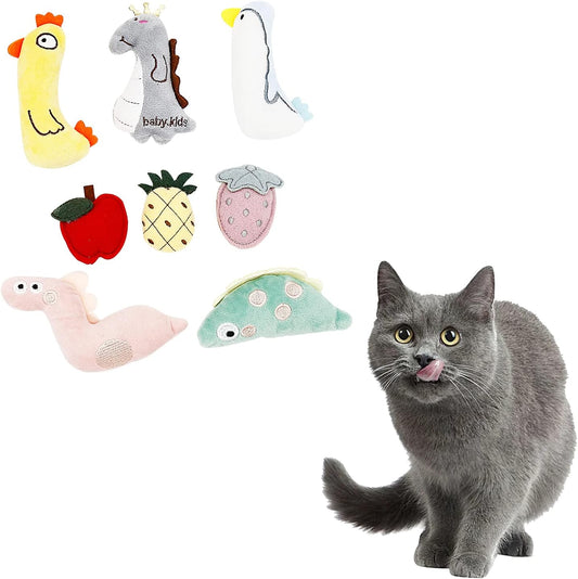 Cat Toy Filled with Catnip,8 Pack Soft Plush Catnip Toys for Indoor Cats, Interactive Cat Toy,Cat Kicker Toy, Kitten Chew Toys Teething, Cartoon Kitten Toys, Multicolor, Multi-Size